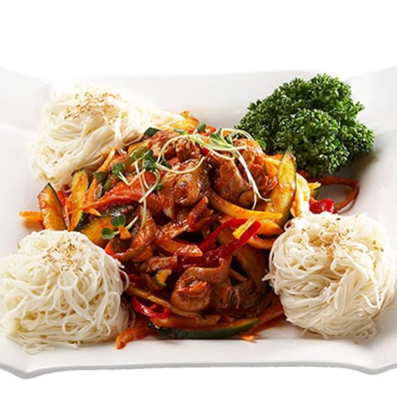Fresh water snails and noodles with spicy sauce